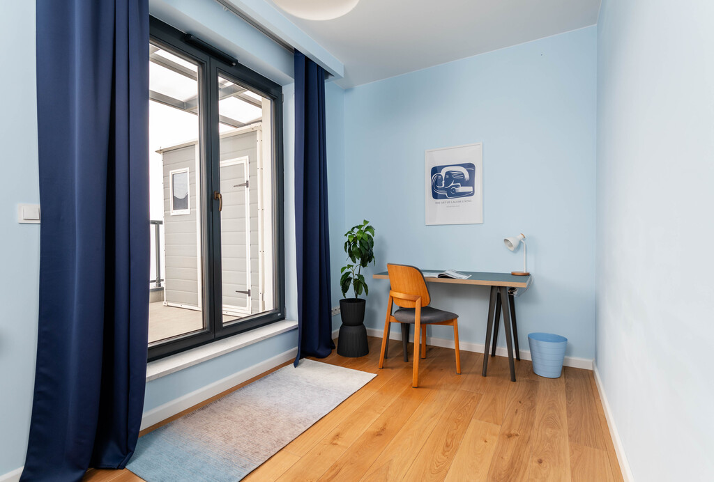 The entire apartment is fully furnished and finished with attention to the smallest details, using the highest quality materials. The interiors arecharacterized by modern design and functionality. The apartment is three-sided, thanks to which it is perfectly lit at any time of the day.