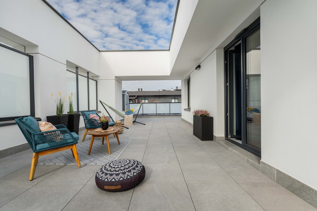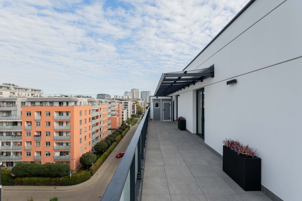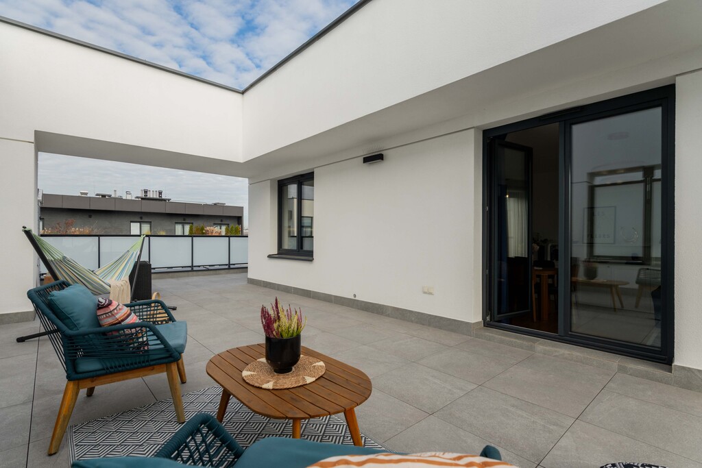 The apartment includes an impressive terrace with an area of84.14 m², which surrounds the entire apartment, giving unlimited arrangement possibilities. A winter garden can be created on the terrace or a jacuzzi can be installed, which makes this offer even more unique (the property owner has permits to make the previously mentioned amenities).