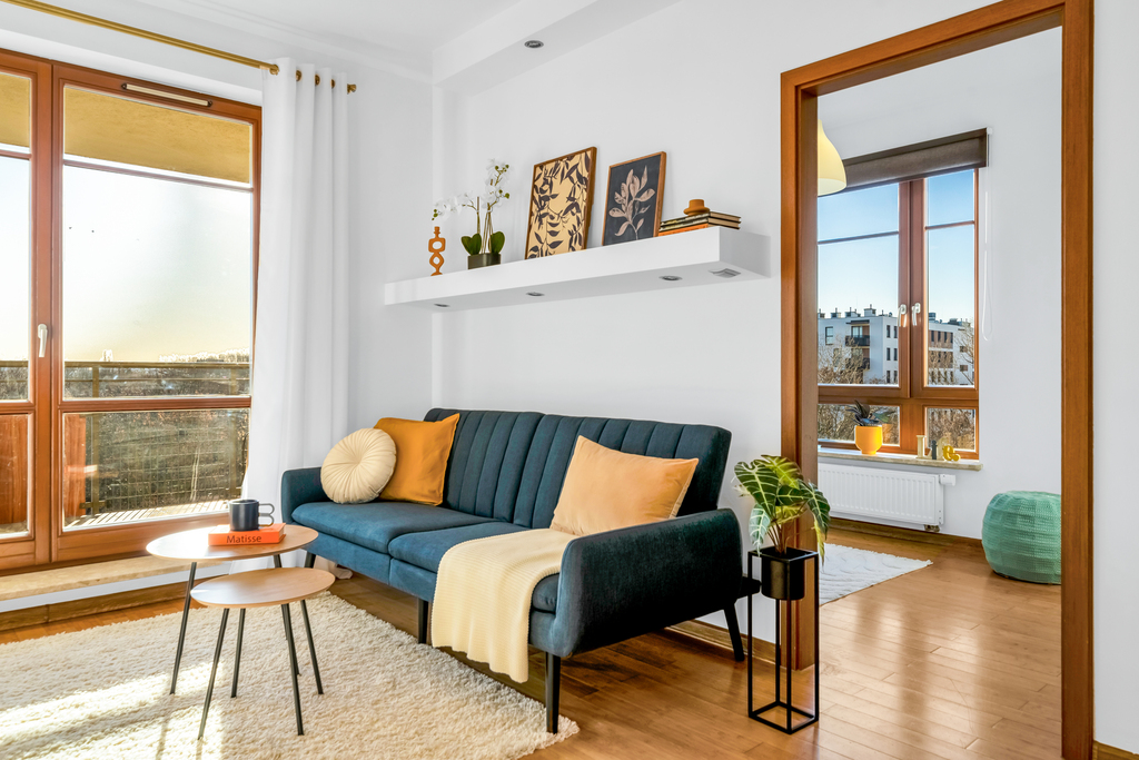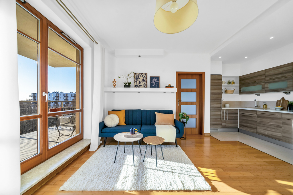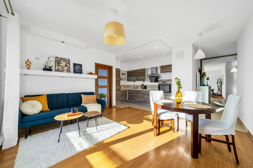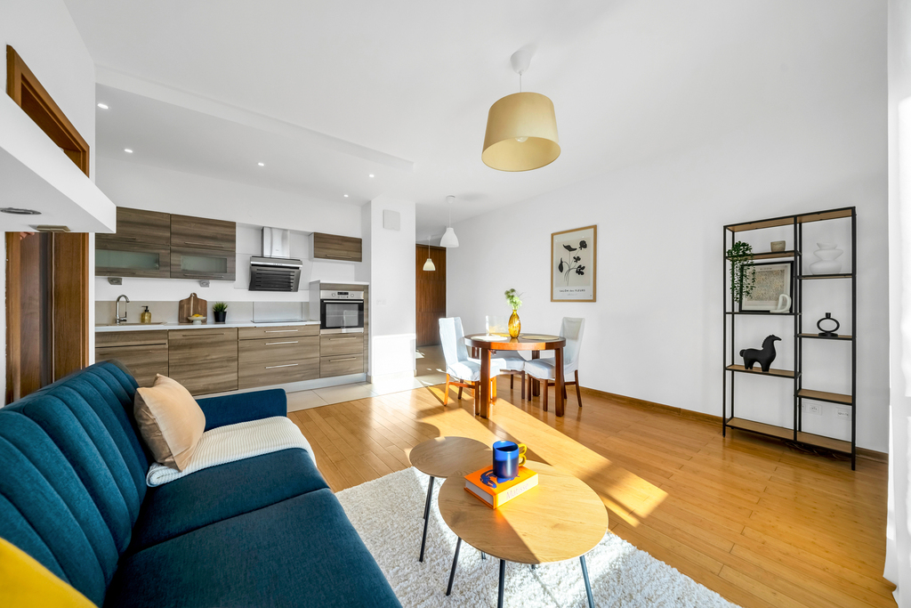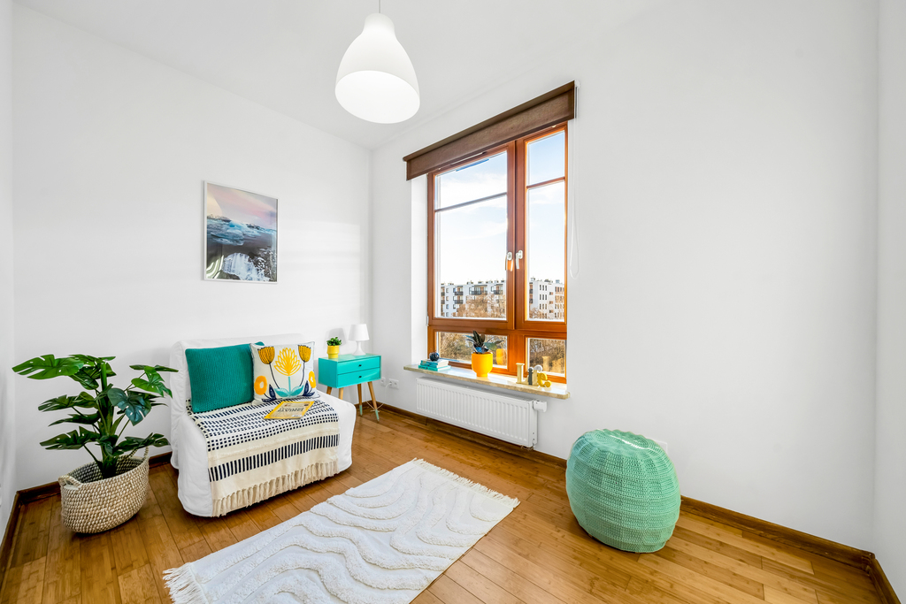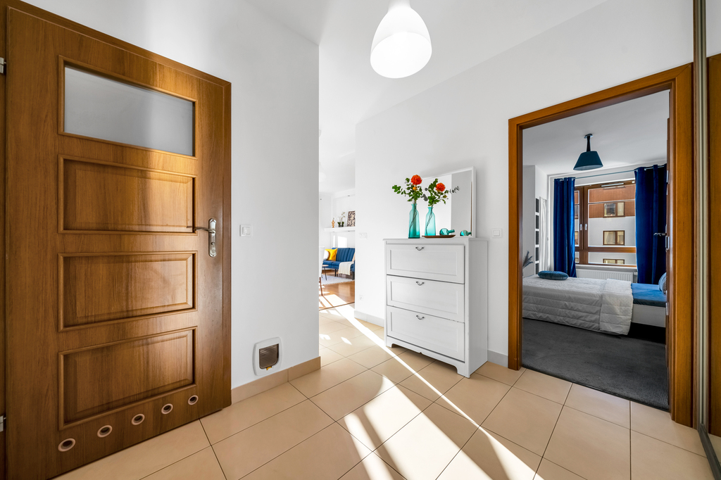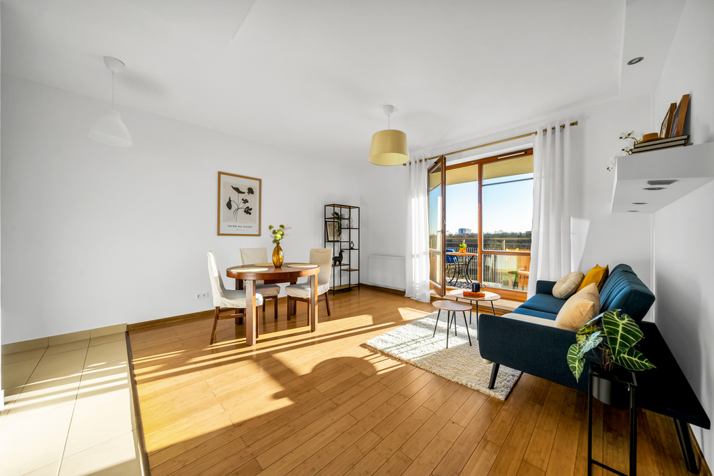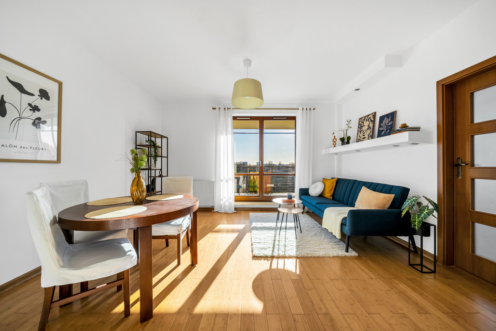 Ekspozycja okien na południowy zachód sprawia, że mieszkanie jest bardzo dobrze doświetlone.